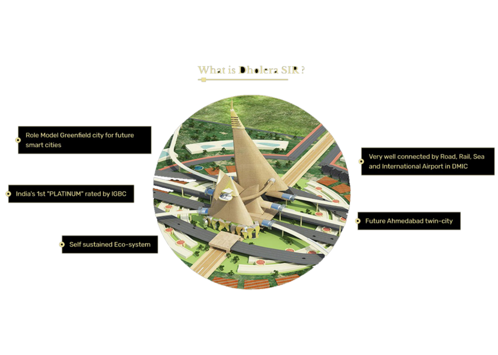 Dholera SIR is an upcoming greenfield smart city located in the state of Gujarat, India. It is part of the Delhi-Mumbai Industrial Corridor (DMIC) project and is being developed as a special investment region (SIR).